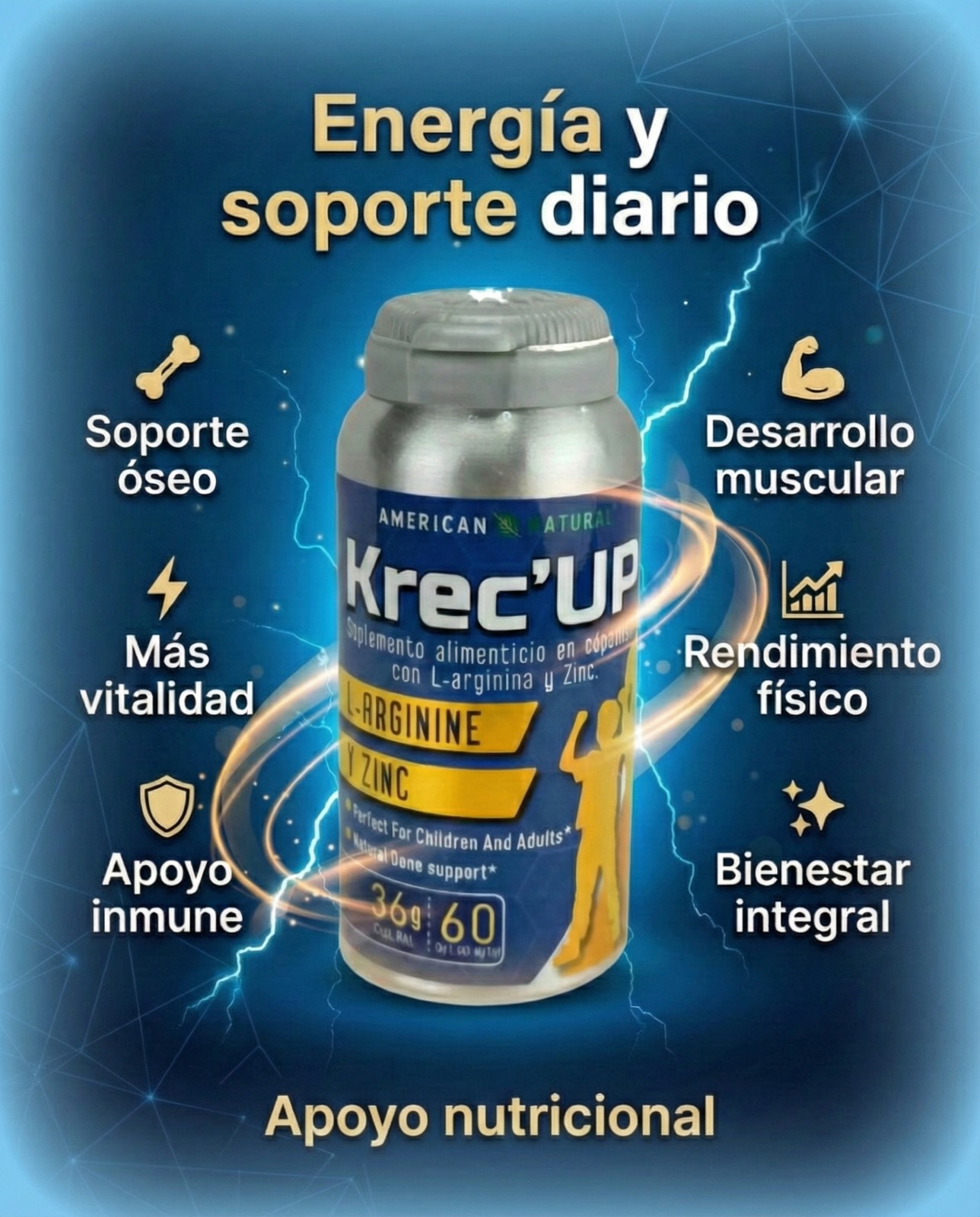 • Nombre del producto: KREC' UP - AMERICAN NATURAL • Categoría: Suplemento alimenticio natural • Notificación Sanitaria: No.36050-ALN-0822