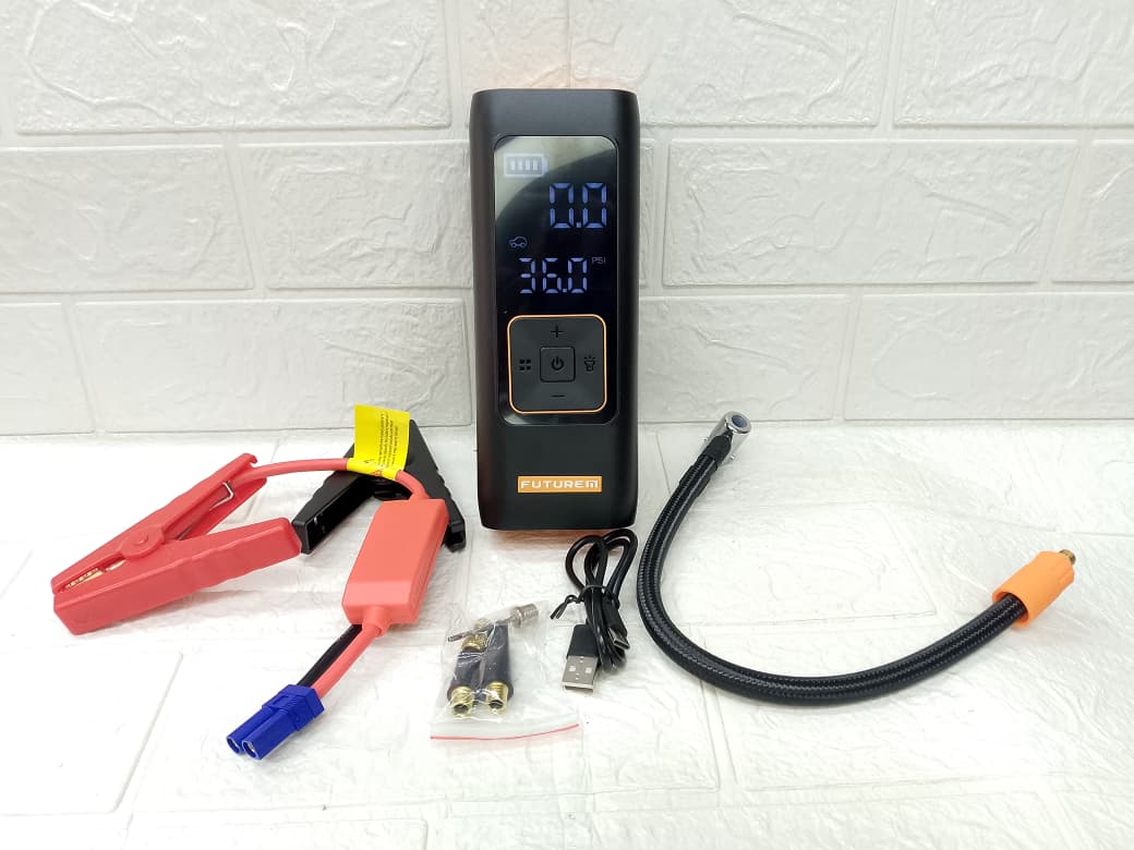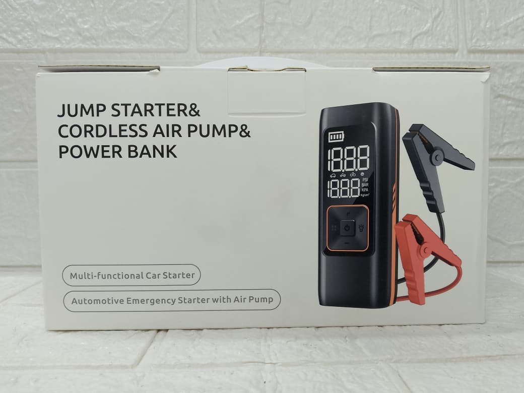 1. 🔋 Arrancador de batería portátil: Permite encender tu auto cuando la batería está descargada, ideal para emergencias.